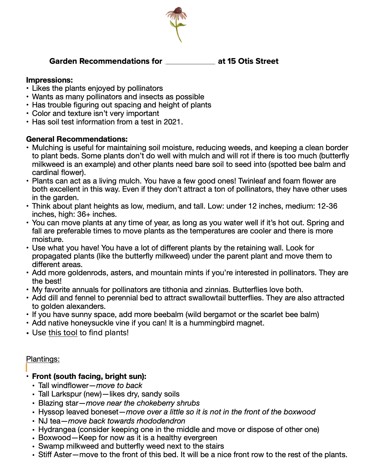 Do you just need a plant list for your space? Happy to provide one tailored to your site's particular needs.